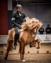 Eldjárn is a distinguished stallion with a winning track and breeding record. He won Landsmót as a four-year-old and now boasts a remarkable score of 8.72. His offspring have already demonstrated his breeding quality, with one of his sons (Hrókur frá Skipaskaga) winning Landsmót in 2024 in the five-year-old stallion category, achieving the second-highest score ever for a stallion of that age. Eldjárn is gigantic in stature but has a sweet and gentle disposition, earning him the nickname "teddybear.” Eldjárn was himself Swedish champion in gæðingakeppni A-flokk in 2024.